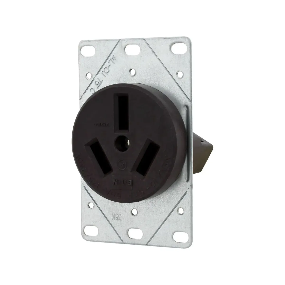 Tomacorriente café obscuro tipo PATA DE GALLINA tripolar de empotre para cocina eléctrica. Trabaja con un amperaje de 50A y un voltaje de 125V hasta 250V. Incluye kit de tornillos para instalación. EATON